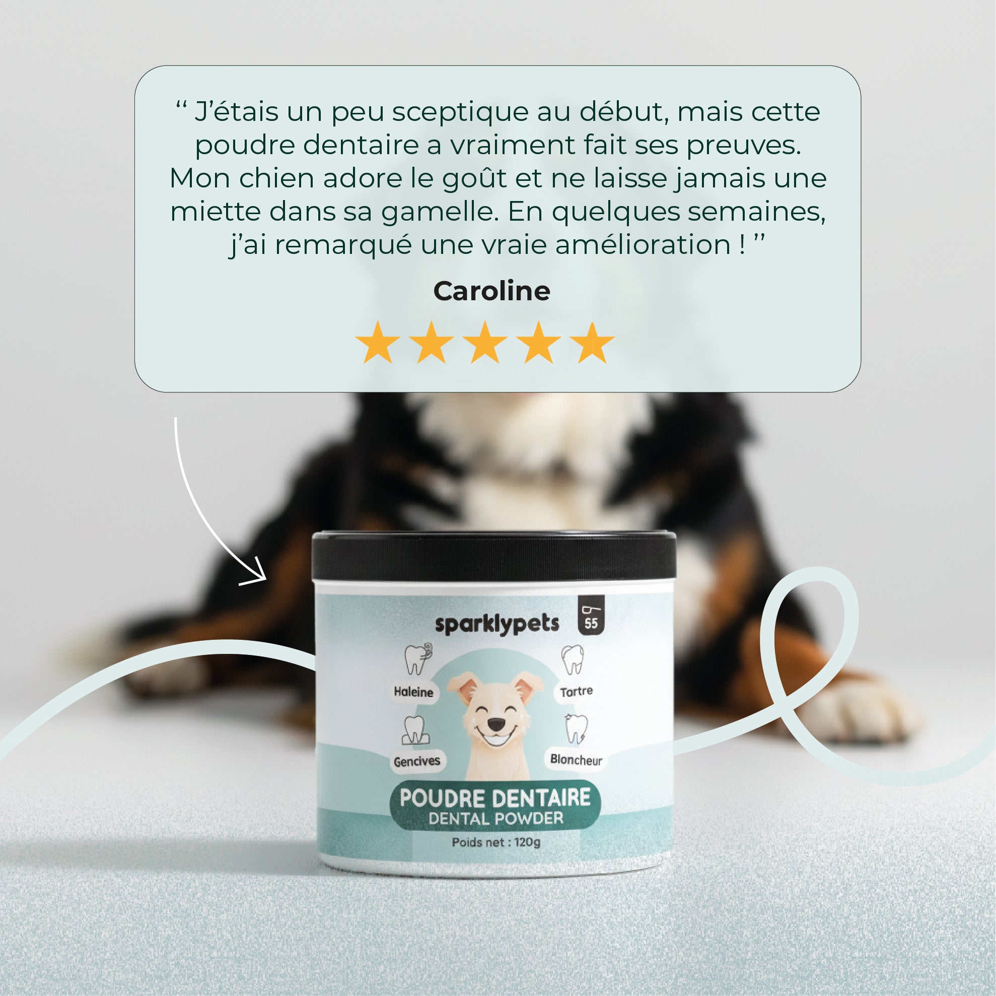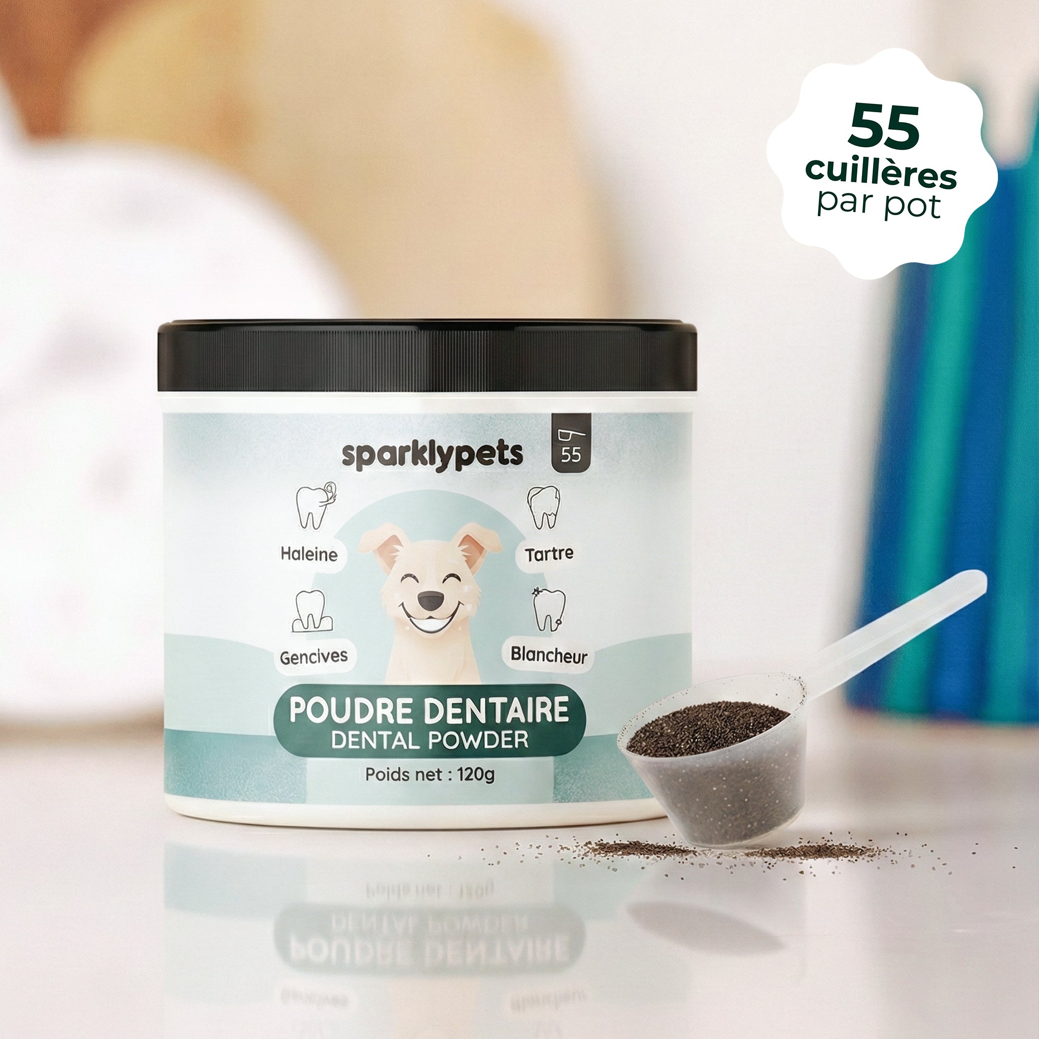 Cette poudre dentaire SparklyPets est développée en collaboration avec des experts en nutrition animale afin d’assurer une action efficace, douce et parfaitement adaptée aux besoins des chiens.